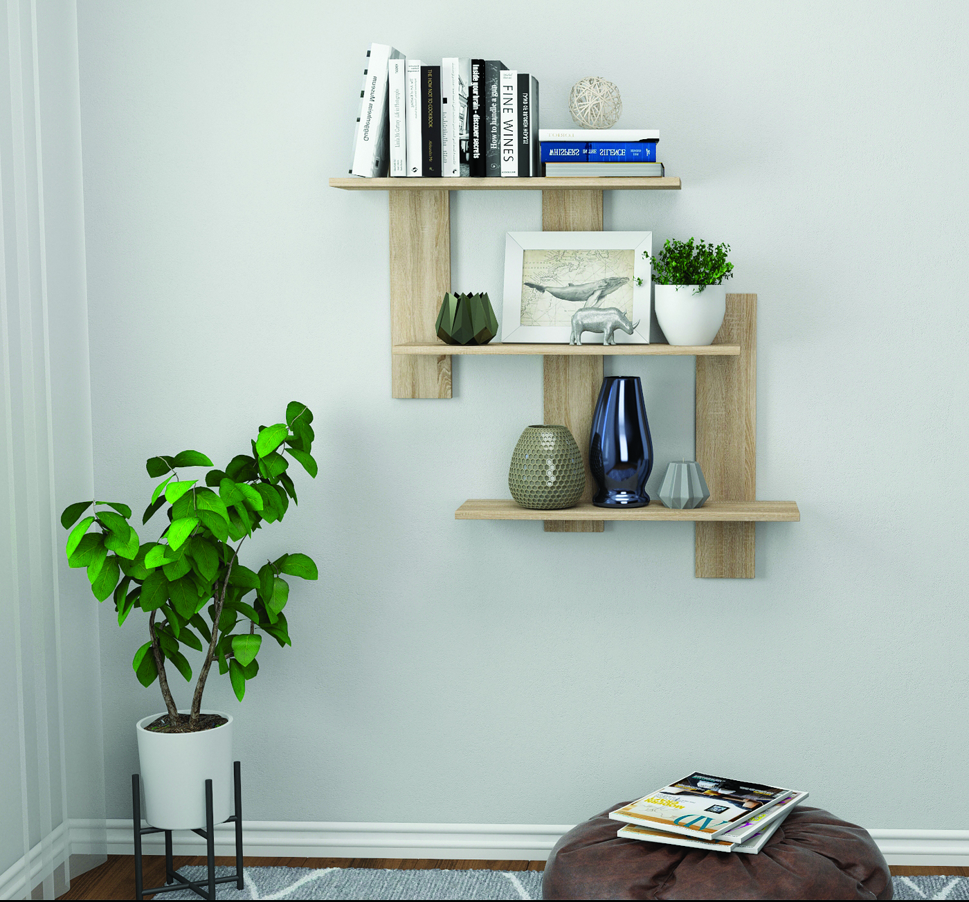 Полка Настенная Прямая настенная Ступеньки сонома, 89х18х93 см, 1 шт.