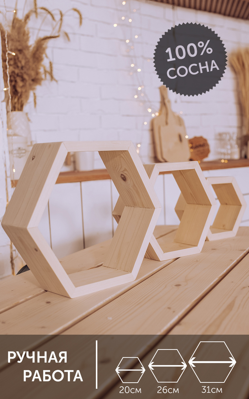 Полка, Комплект полок Настенная Прямая деревянная полка 3шт. массив сосны, 28х9,5х31,5 см, 3 шт.