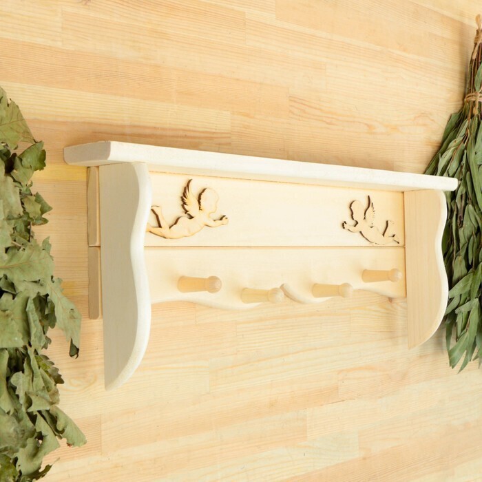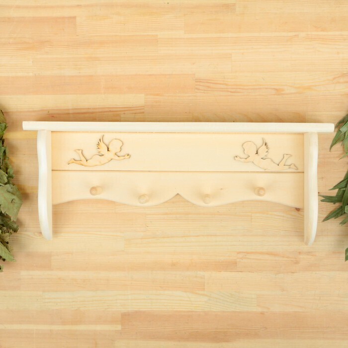 Полка Настенная Прямая Полка-вешалка «Уют-Ангелы», 55х8х22 см, 1 шт.