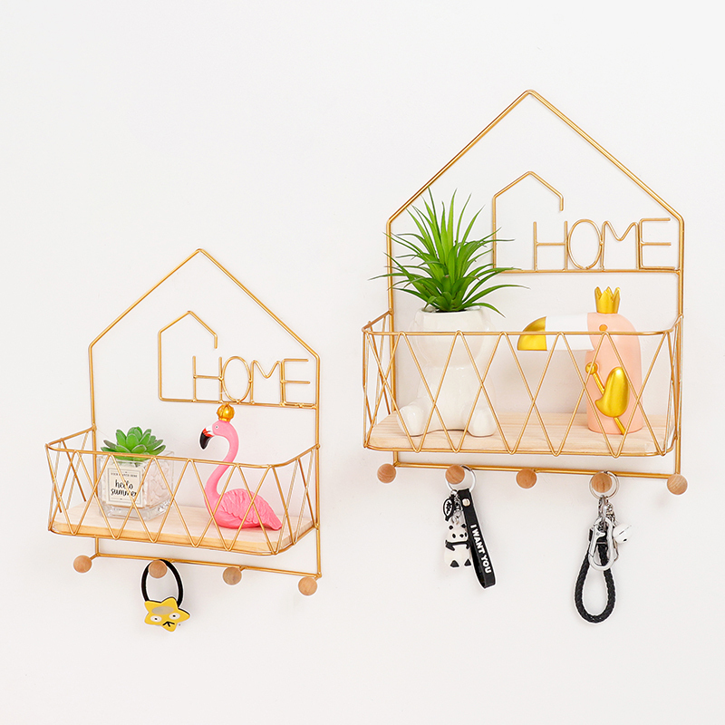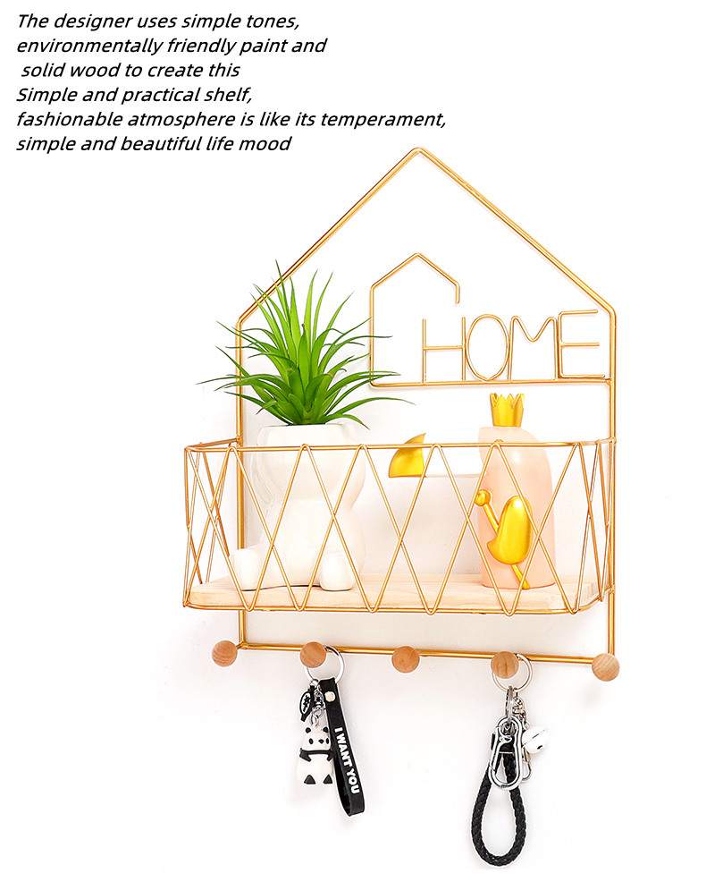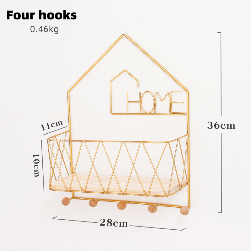 Полка декоративная настенная "home" в форме домика с 5ю крючками цвет золотой, 28х11х36 см