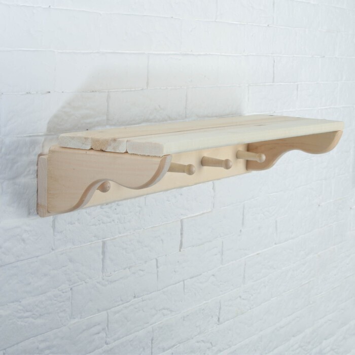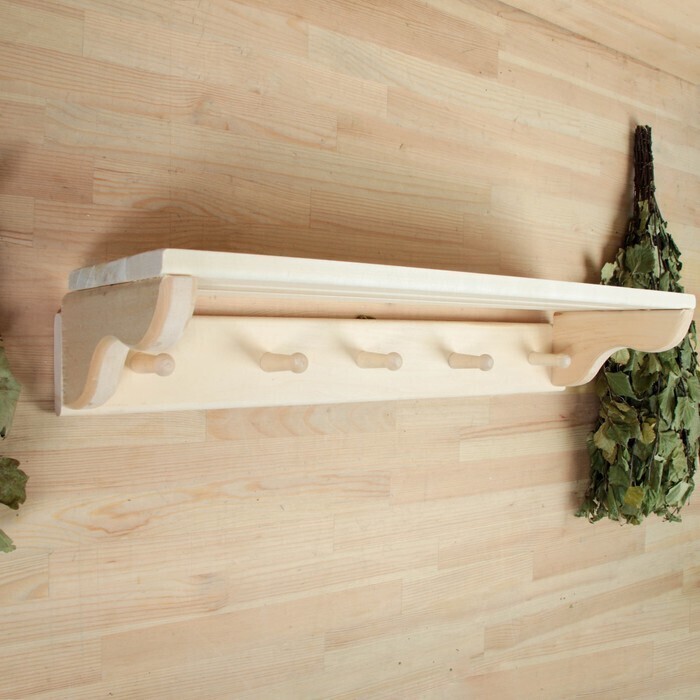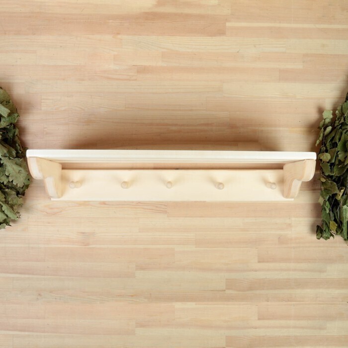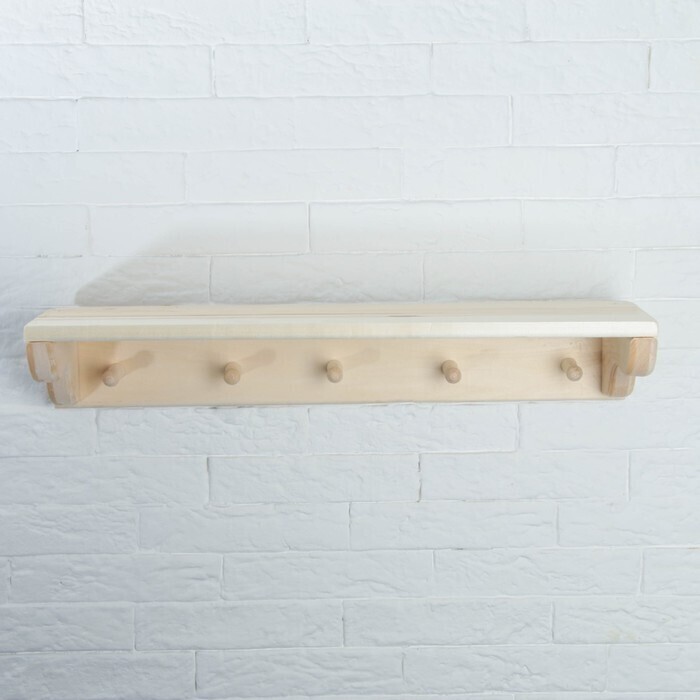 Полка Настенная Прямая большая с вешалкой 5 крючков 57х18х12см, липа, 55х12х18 см, 1 шт.