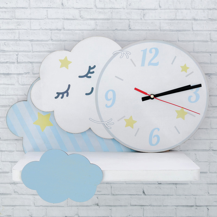 Полка Настенная Прямая с часами "Облако", 40х14,5х29,2 см, 1 шт.