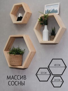 Полка, Комплект полок Настенная Полки соты, 40х9х35 см, 3 шт.
