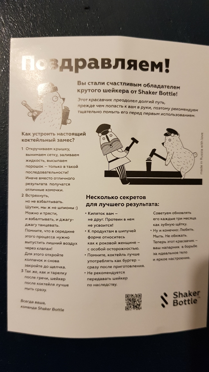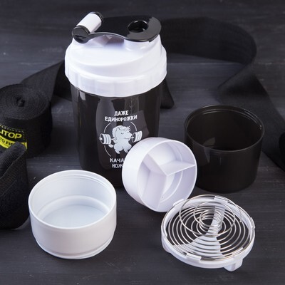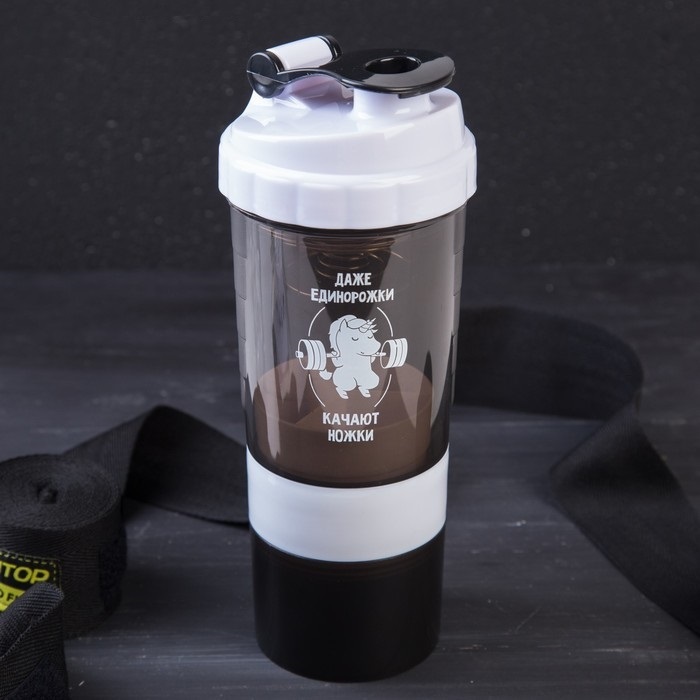 Шейкер спортивный, Даже единорожки качают ножки 0,5л., черный, белый