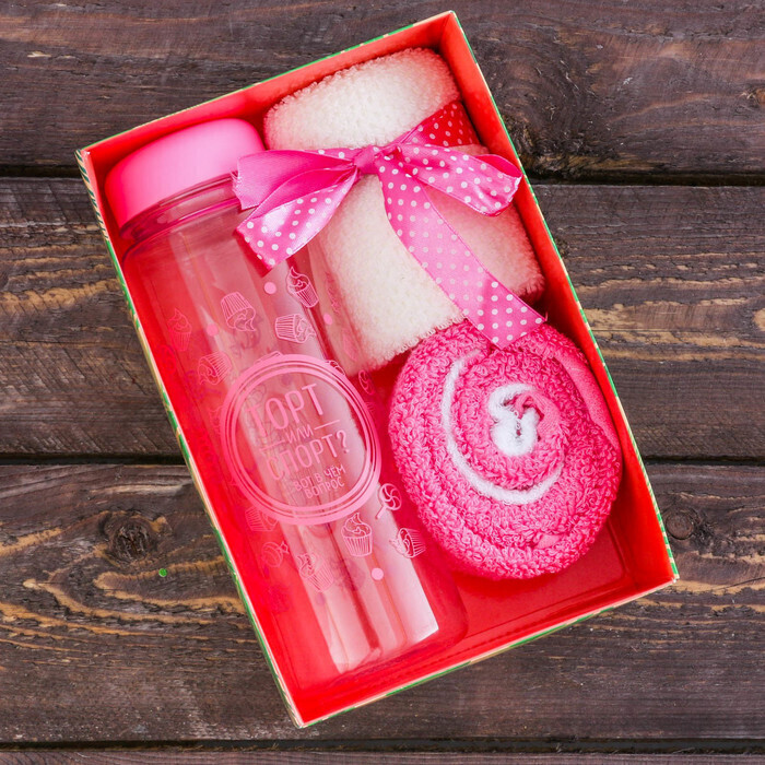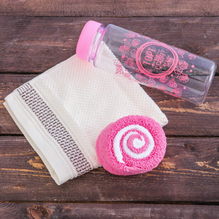 Шейкер спортивный, Набор "Торт или спорт": бутылка для воды 500 мл, полотенце 2 шт, 30 см x 30 см