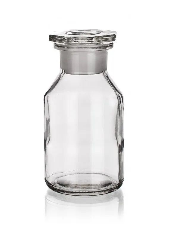 Склянка лабораторная с широкой горловиной и притертой пробкой, 250 мл., 1 шт. Прозрачная.