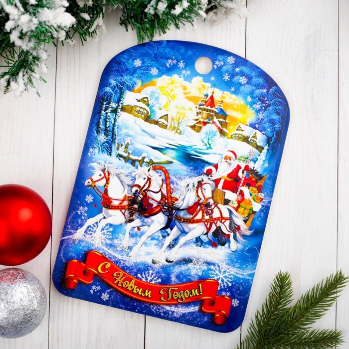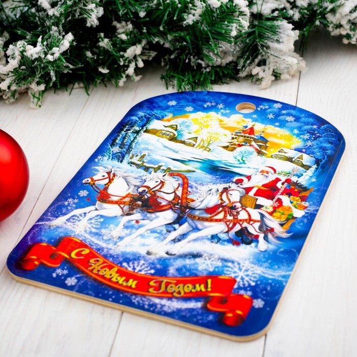 Доска разделочная сувенирная "С Новым годом. Лошади", 27,5х19,5см