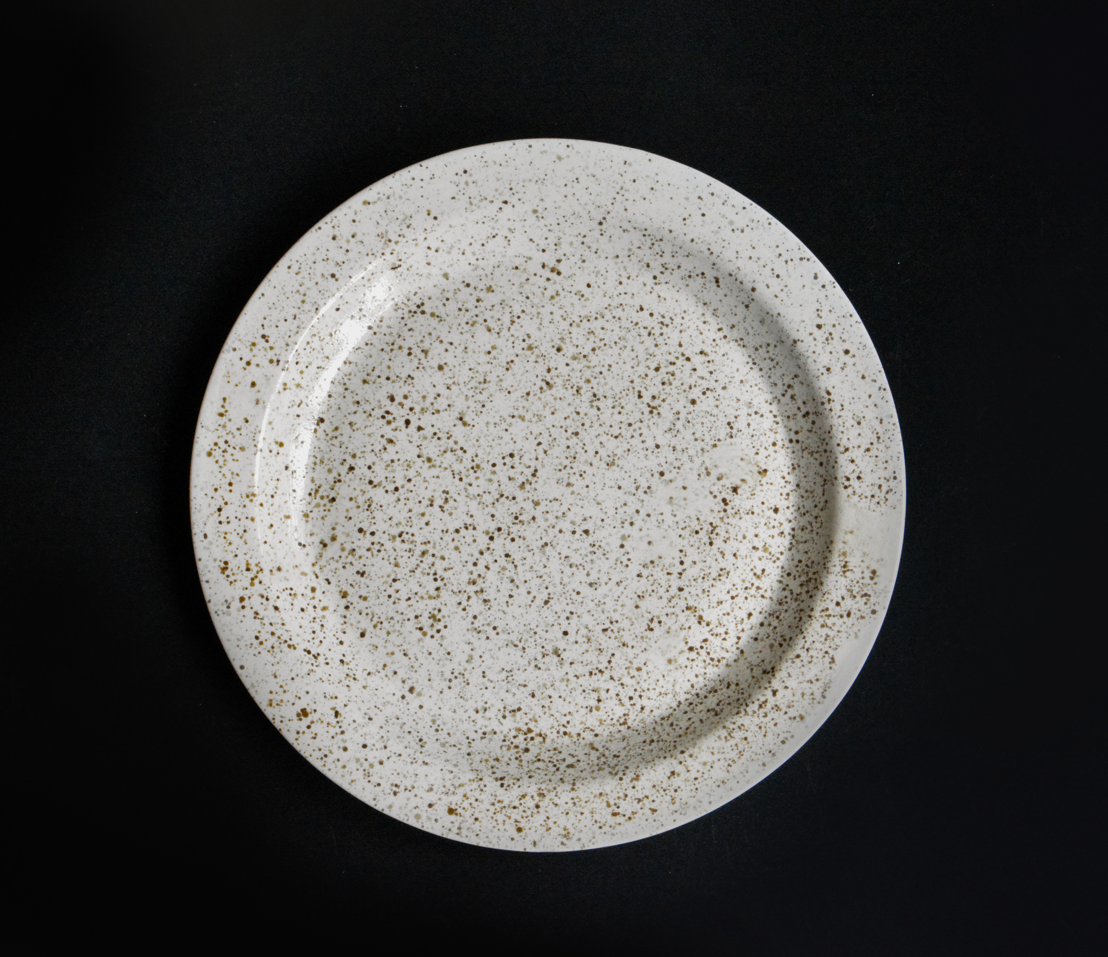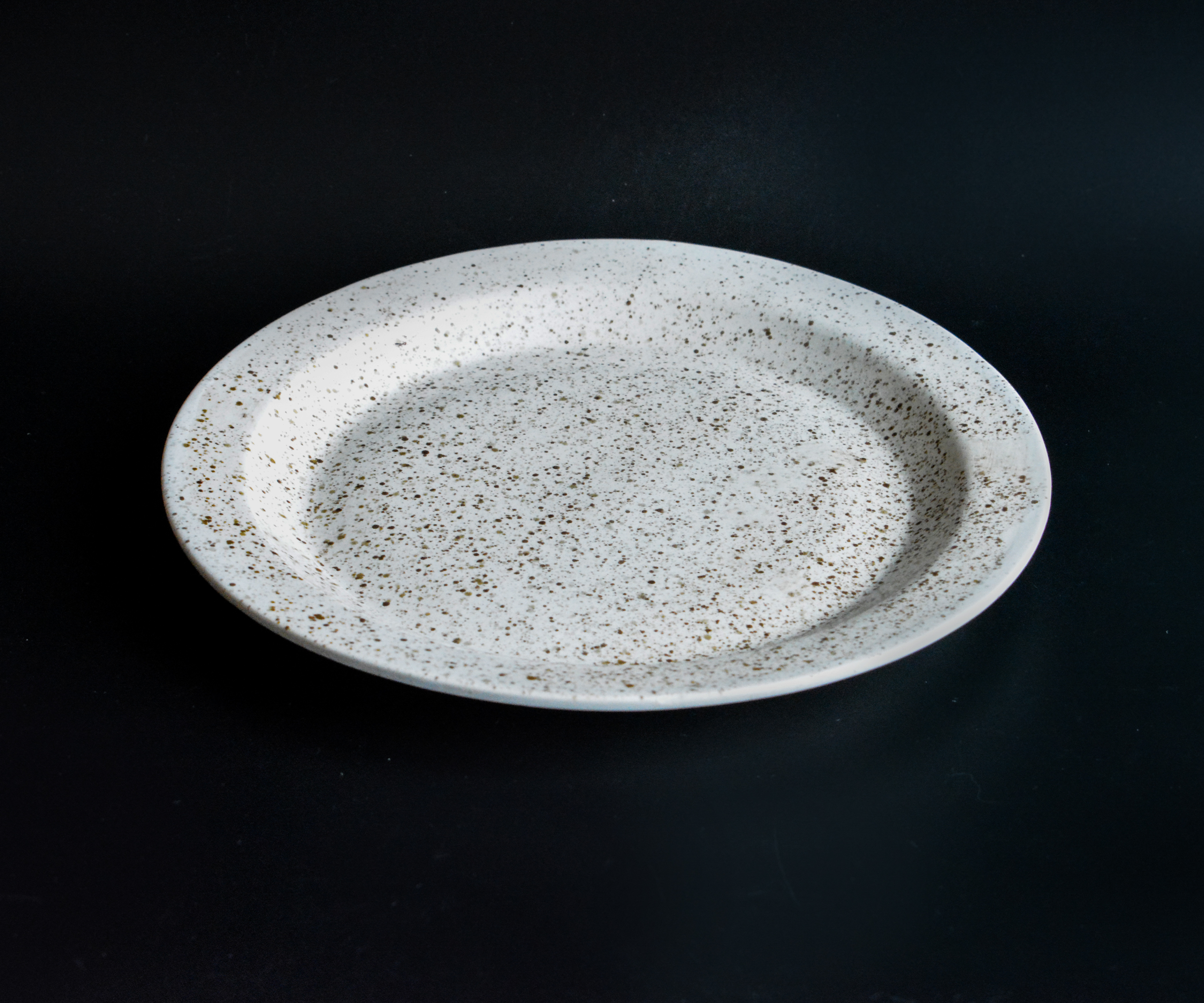 Снежная пыль, обеденная тарелка ручной работы, белая в крапинку