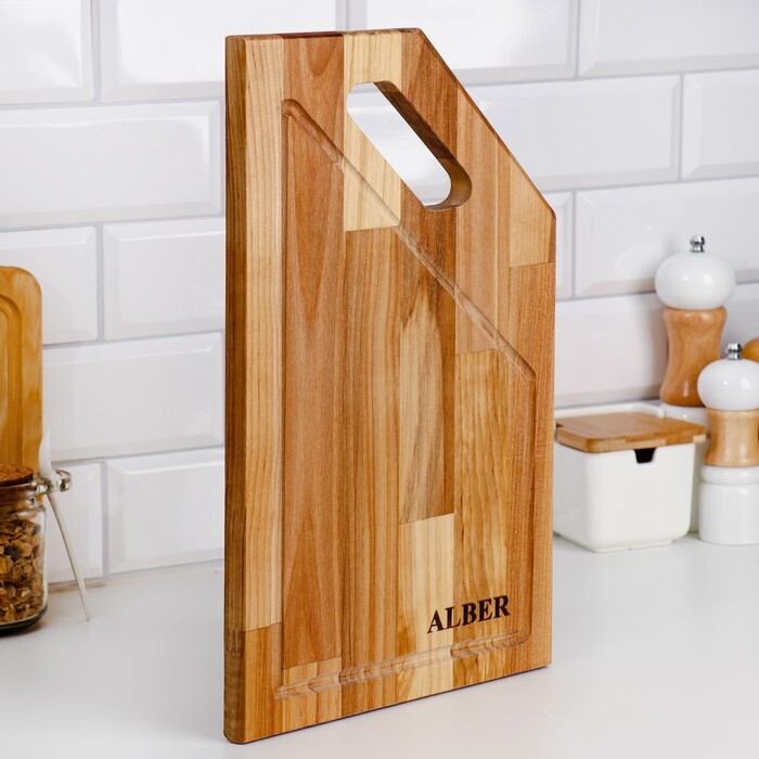 Доска разделочная "Угловая ручка" большая (кровосток) 28х22х1,8 см