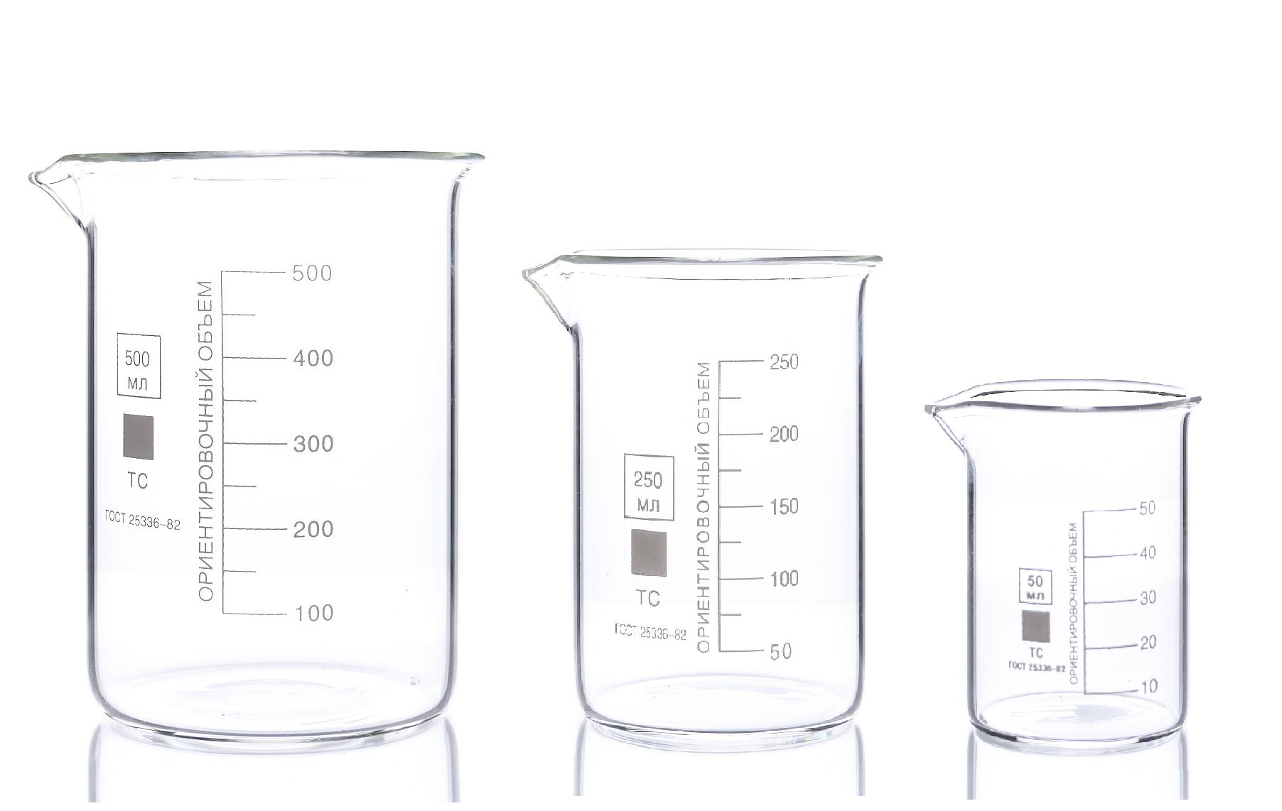 Набор лабораторных стаканов (тип Н, низкий с делениями и носиком, термостойкий) ТС 500, 250, 50 мл
