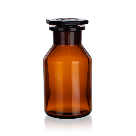 Склянка для реактивов 250 мл из темного стекла с широкой горловиной и притертой пробкой СТШ-250