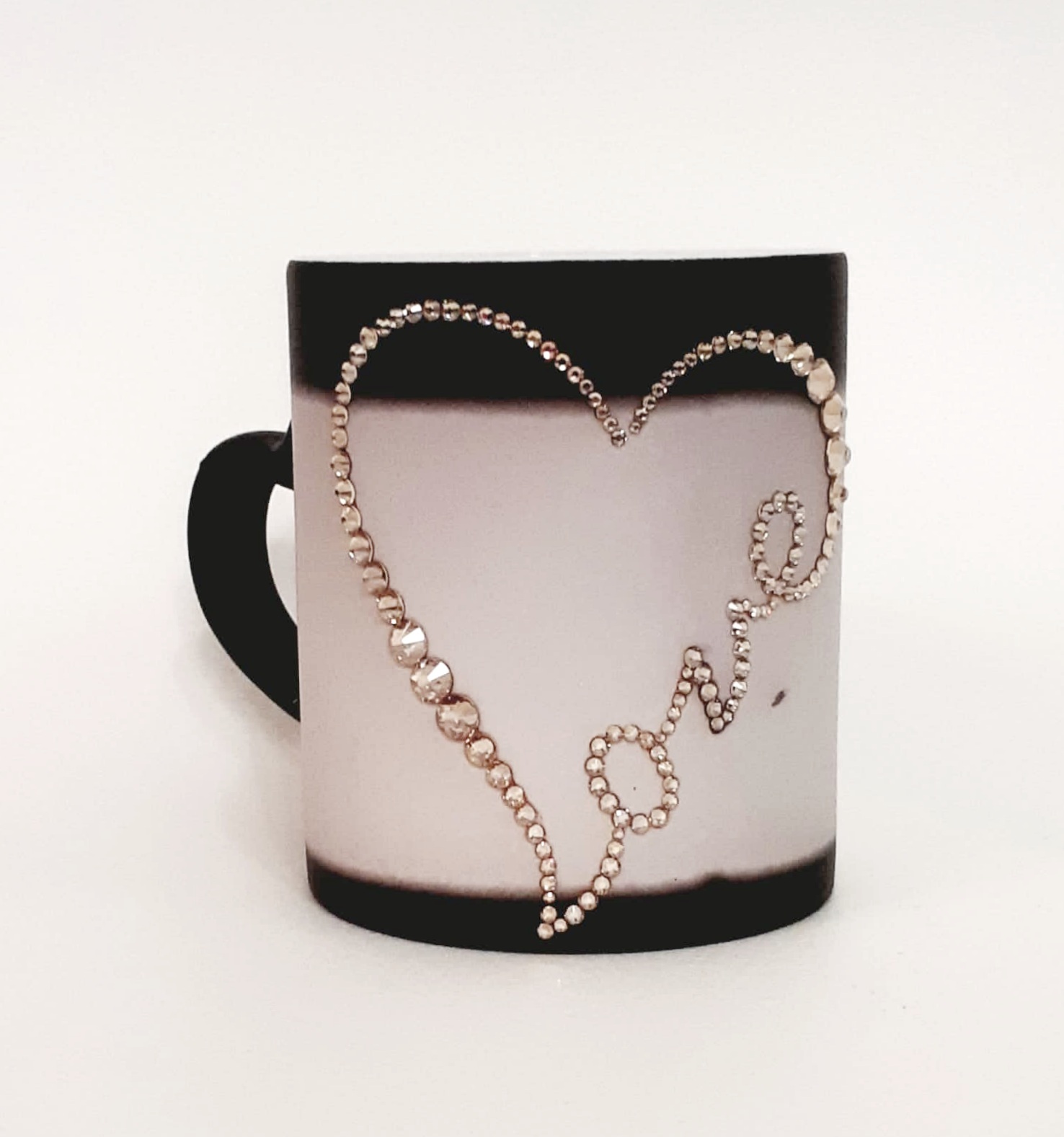 Кружка-хамелеон со стразами подарочная "Сердце", 300мл, Черная