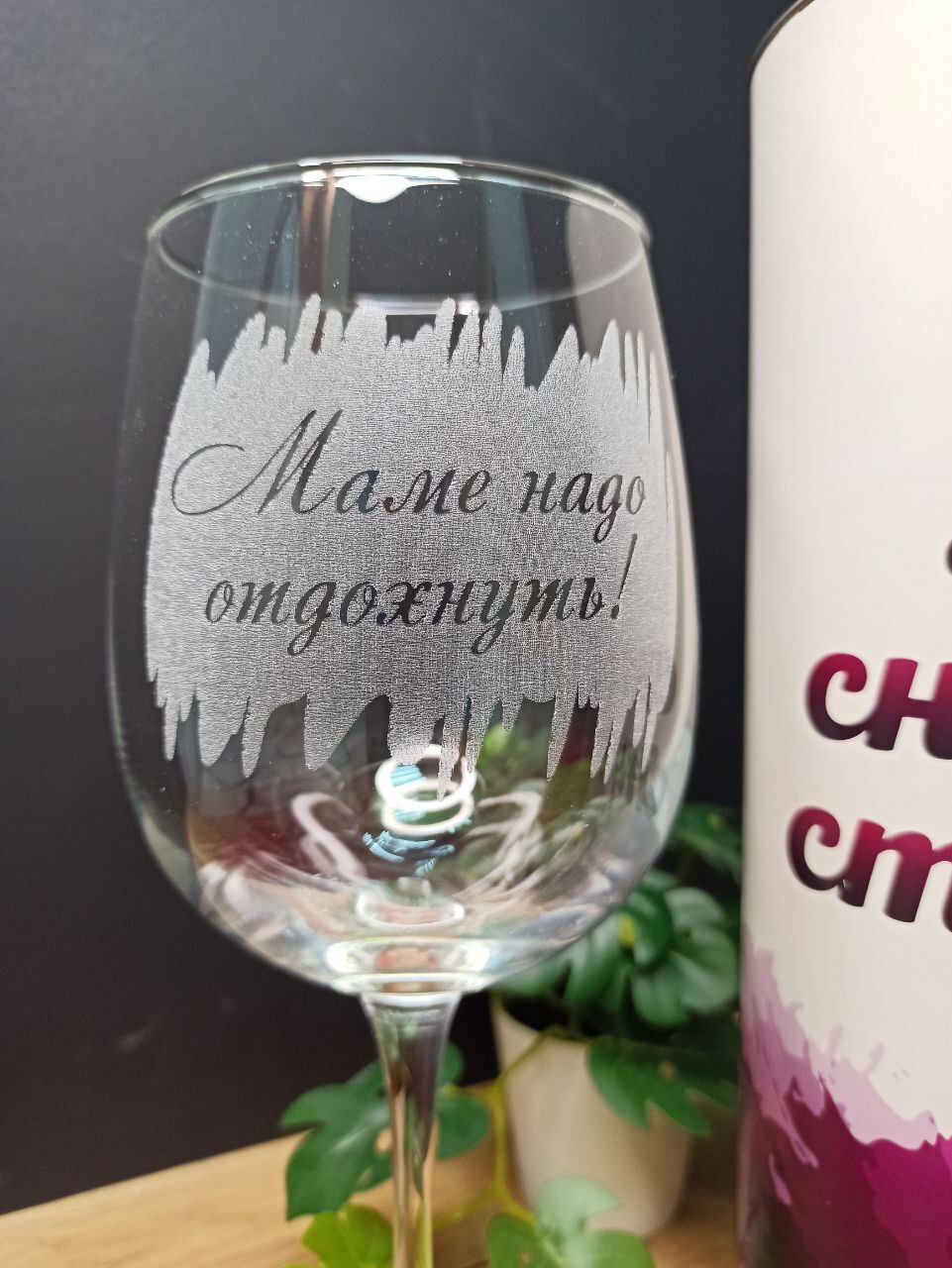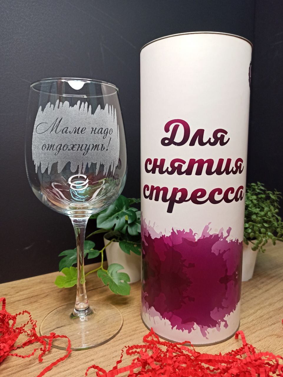 Бокал для вина "Маме надо отдохнуть" в подарочной упаковке "Для снятия стресса". 550 мл