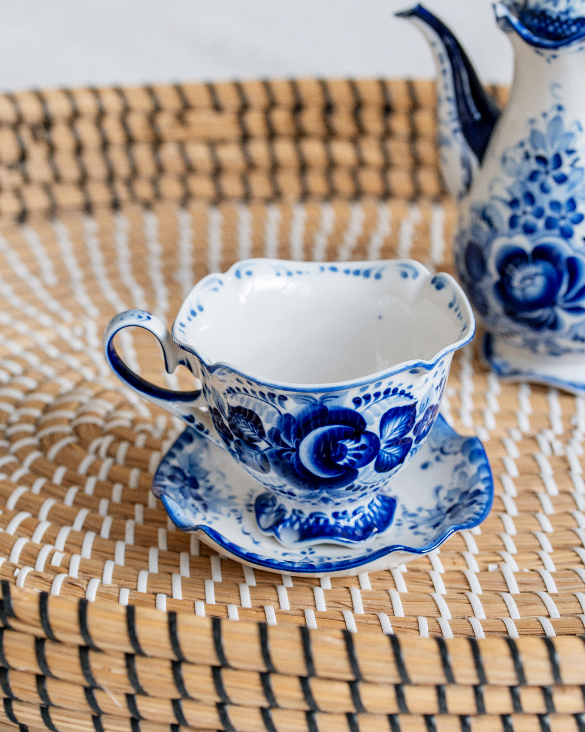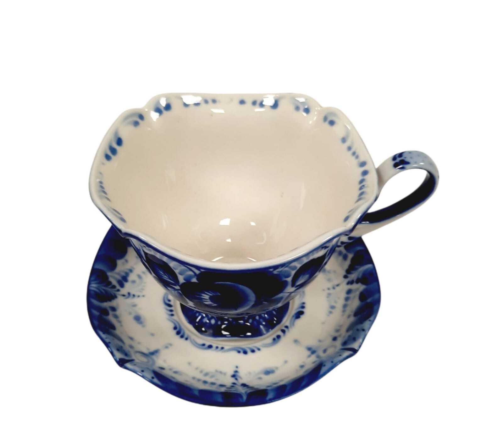 Чайная пара "Семейная" 250 мл гжель фарфор ручная работа сделано в России