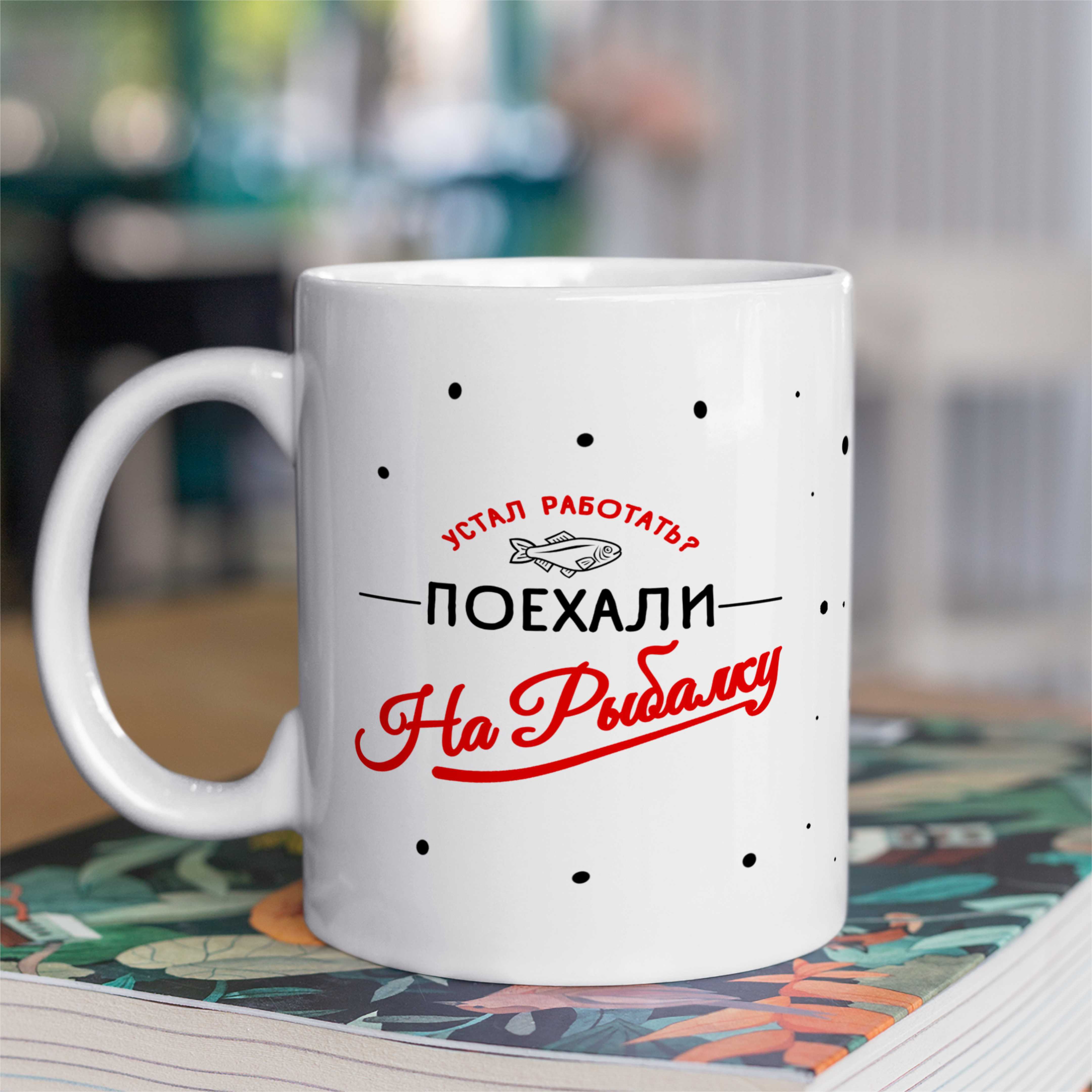 Кружка с принтом "Устал работать, поехали на рыбалку"