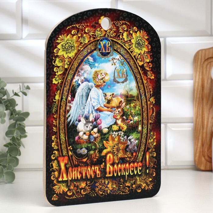Доска разделочная пасхальная "Христос Воскресе. Девочка с ягненком", 19,5х27,5 см