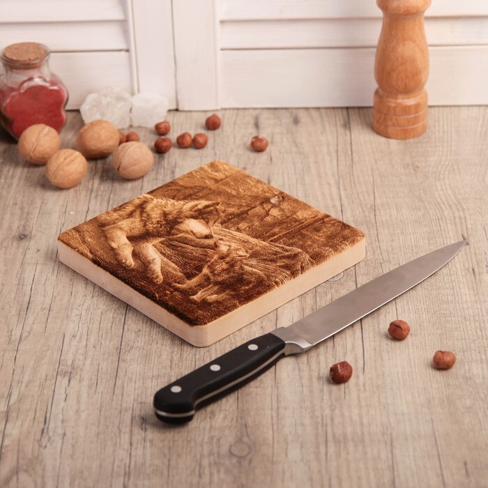 Доска из массива кедра "Волки", квадратная, 18 х 18 см