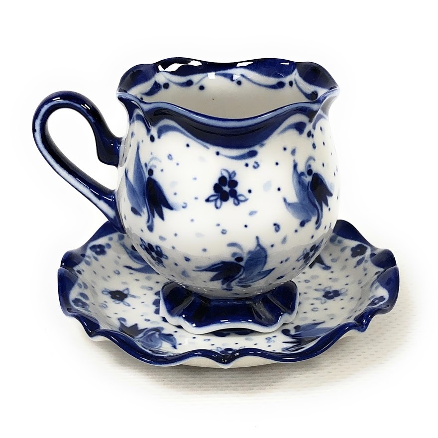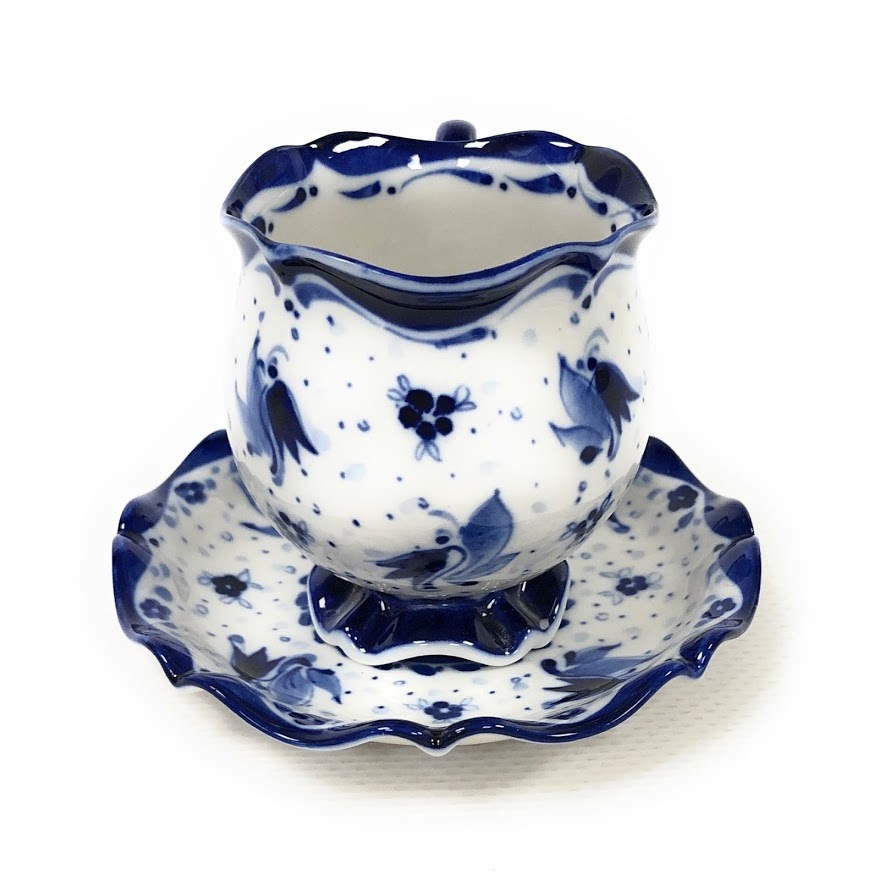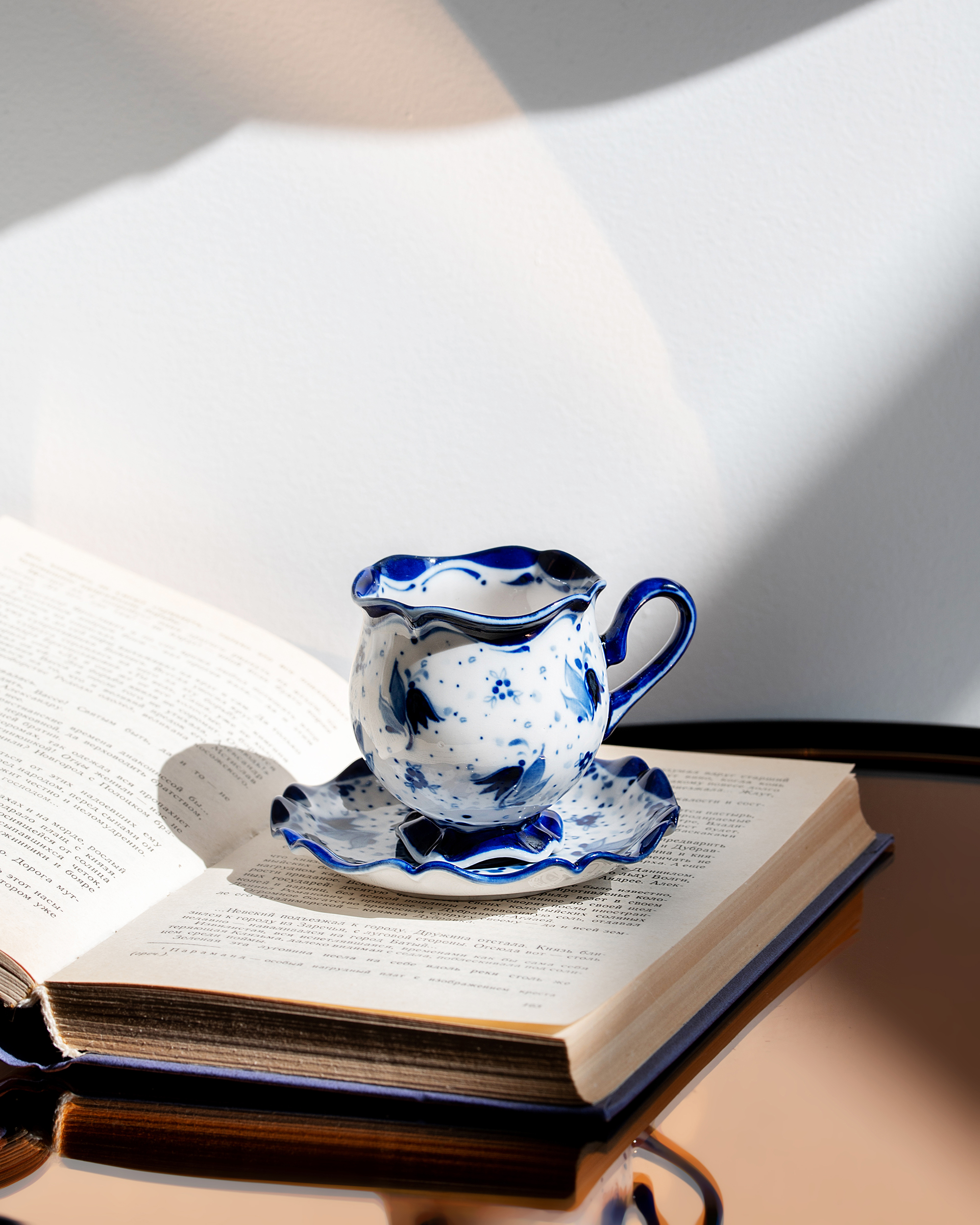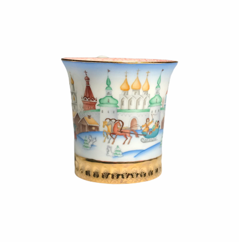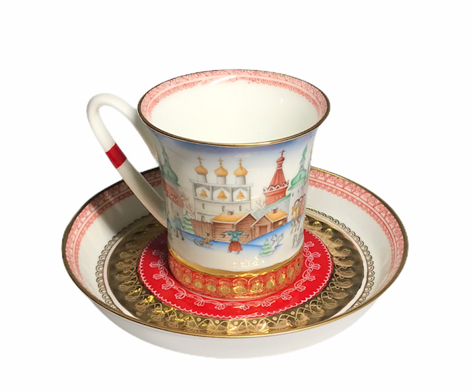 Кофейная пара "Золотое кольцо" костяной фарфор, ручная работа