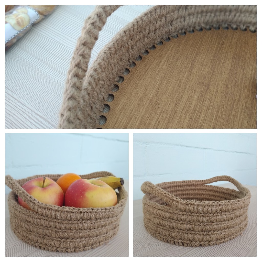 Корзина - поднос из джута. Дно деревянное. Диаметр 20 см.