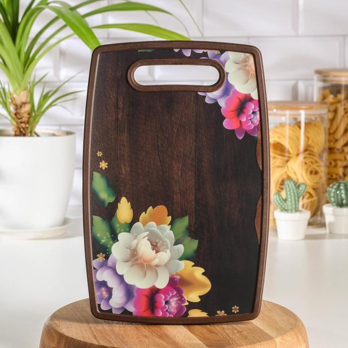 Доска разделочная прямоугольная "Цветы и дерево", 30х20 см