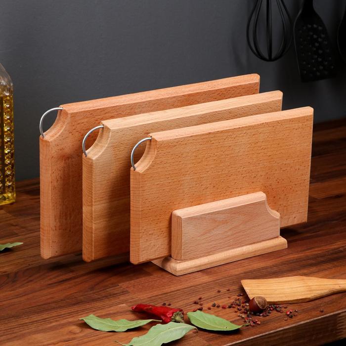 Набор досок, размер: 27х16 см; 29х18 см; 31х20 см, размер подставки: 18х14 см, цельный массив бука