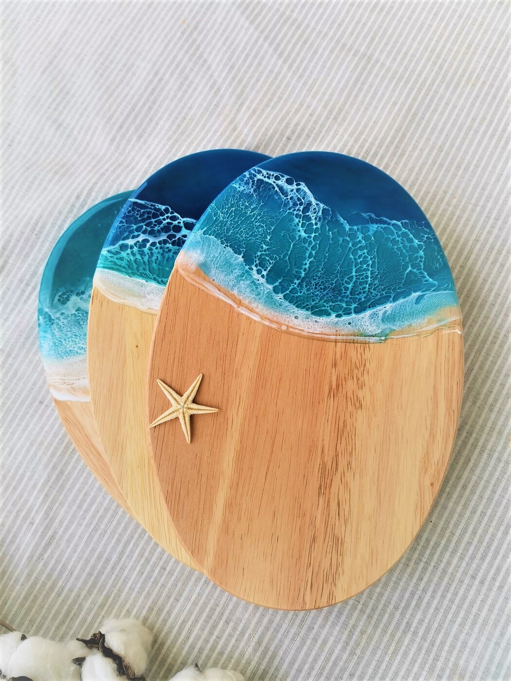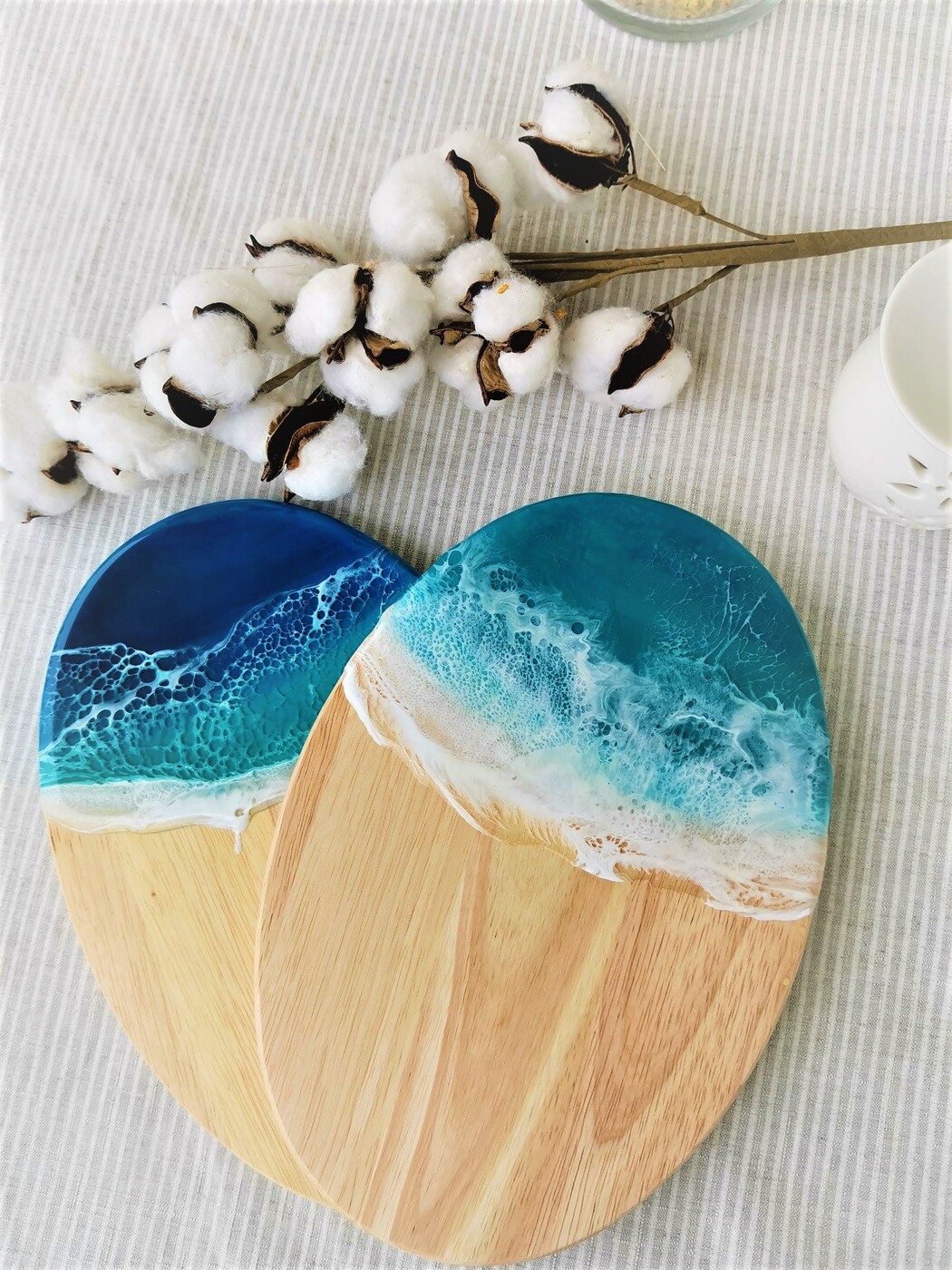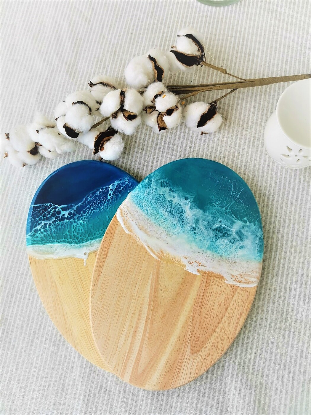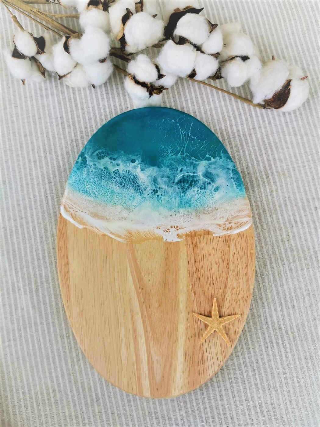 Доска сервировочная авторская "Море", 24 x 17 x 1 см, гевея (заливка эпоксидной смолой)