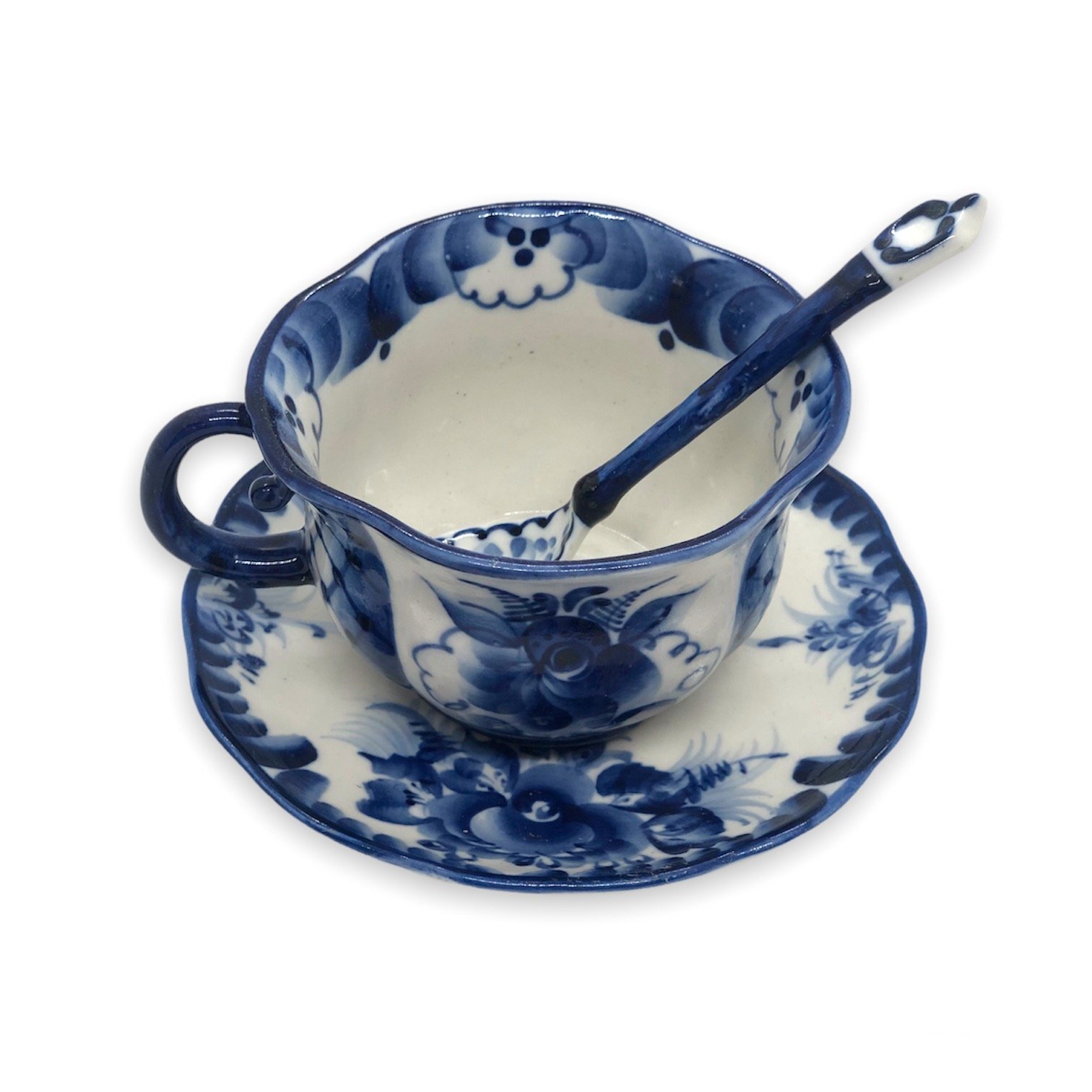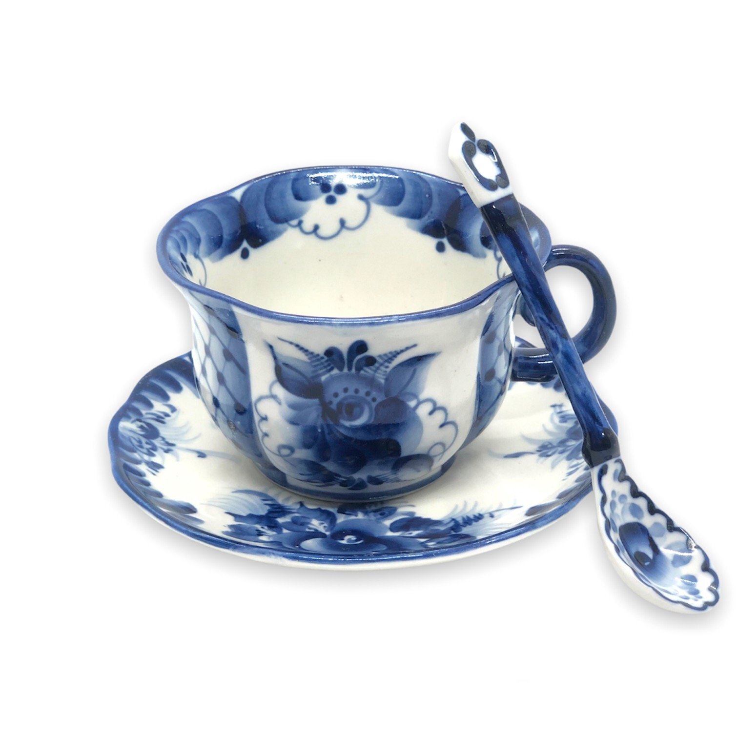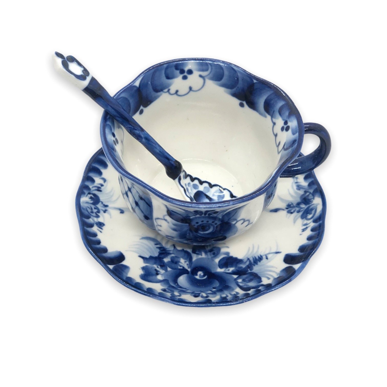 Чайная тройка "Элегия" гжель, авторская работа, комплект