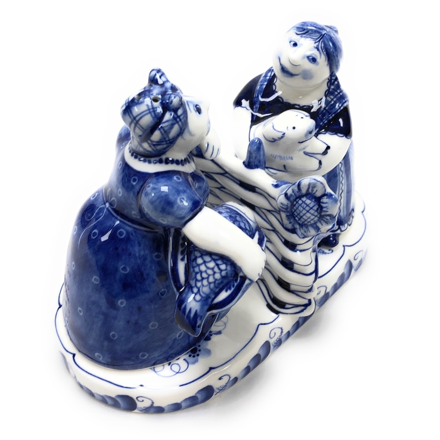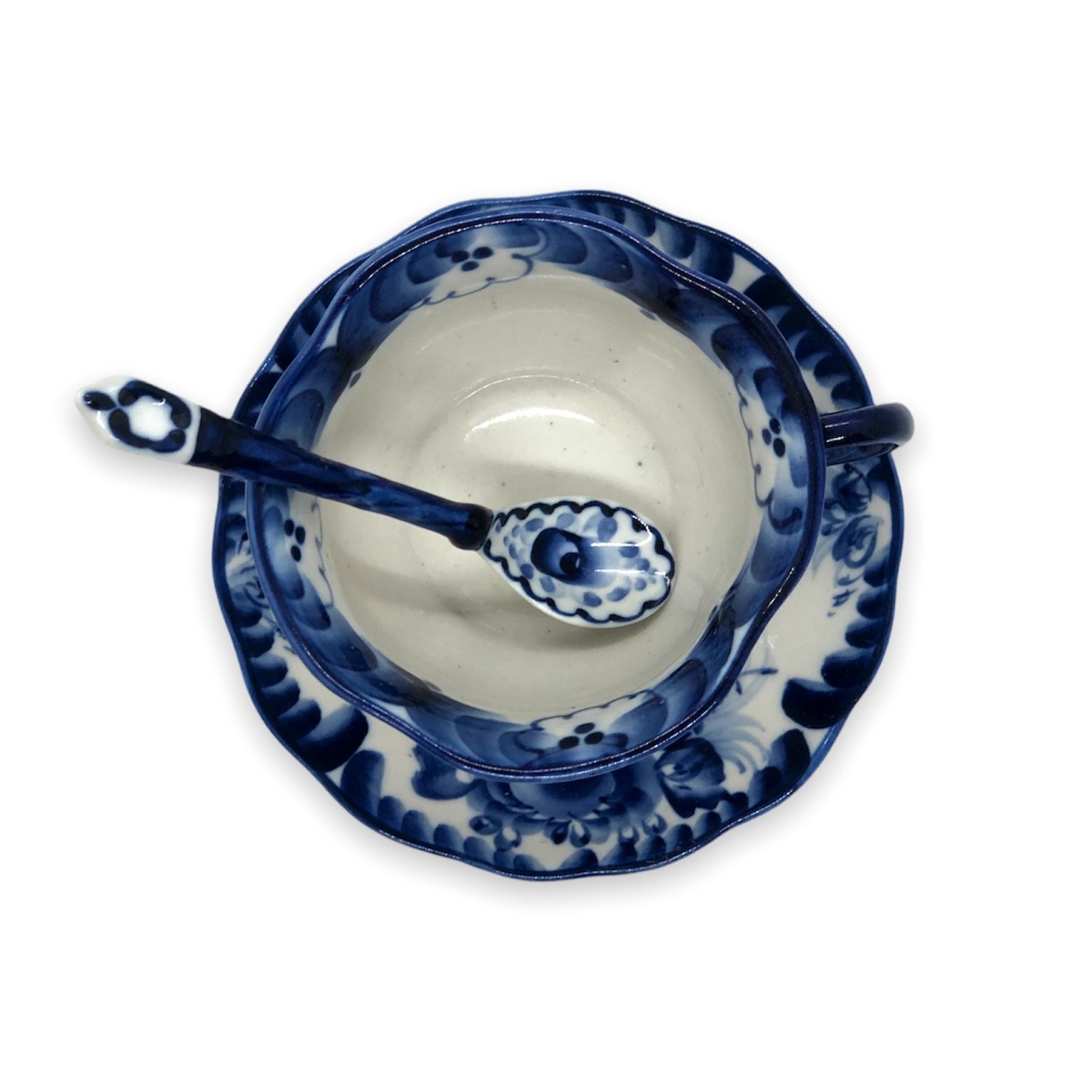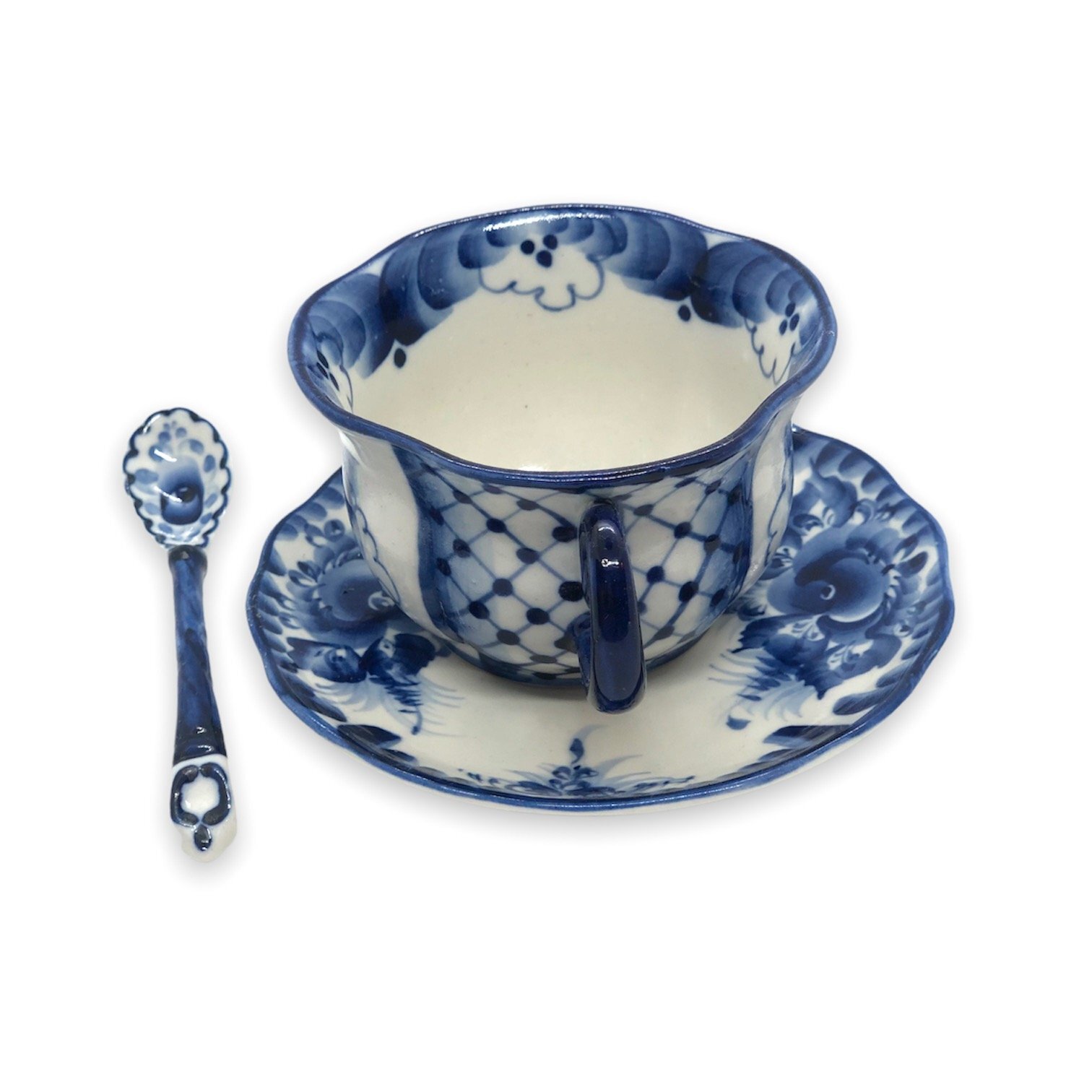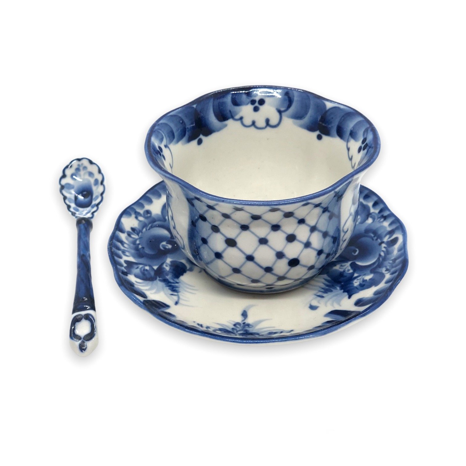 Чайная тройка "Элегия" гжель, авторская работа, комплект