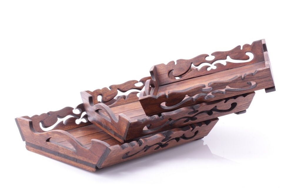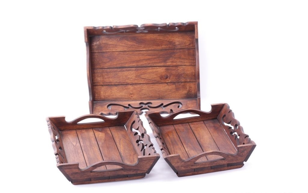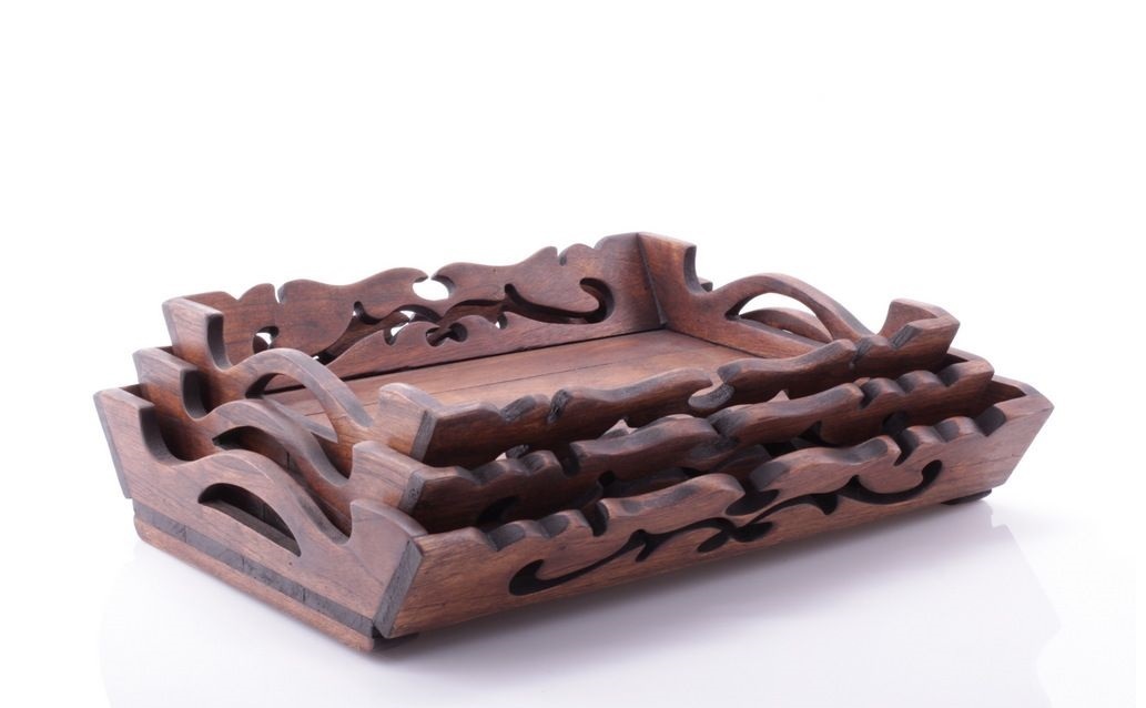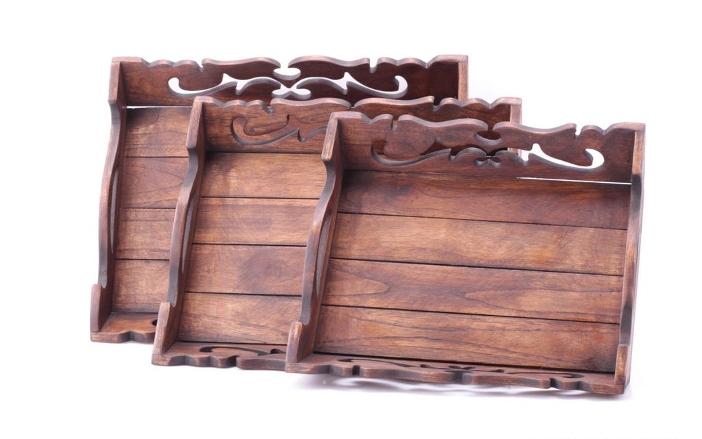 Набор из 3 подносов ручной работы Тиковое дерево "Pulsmarket"