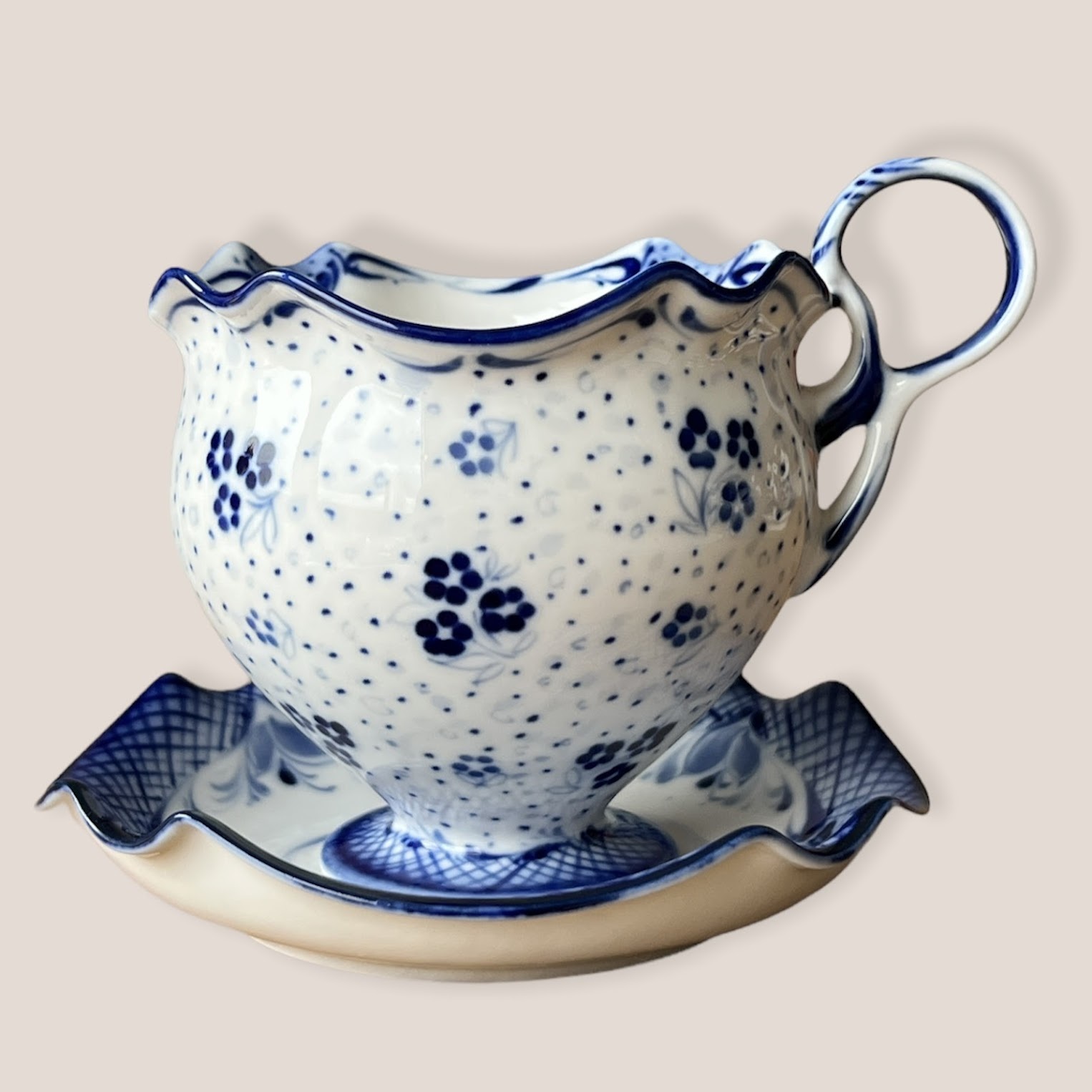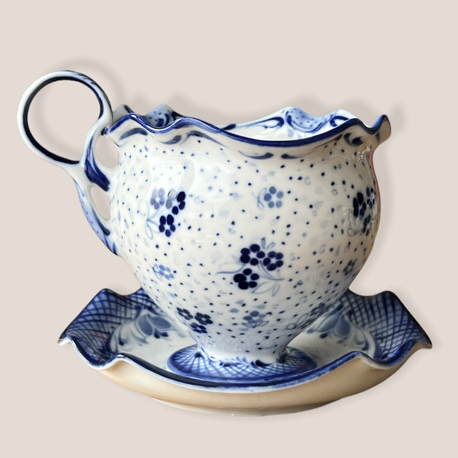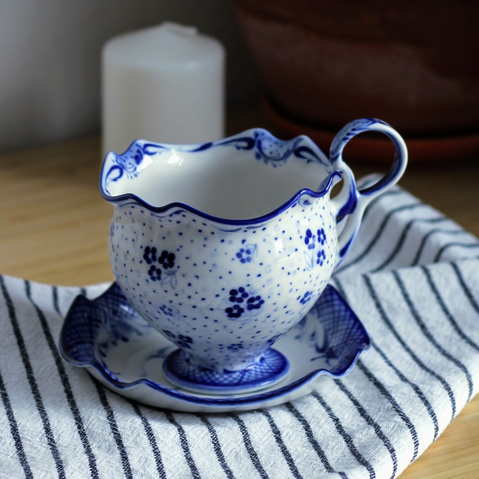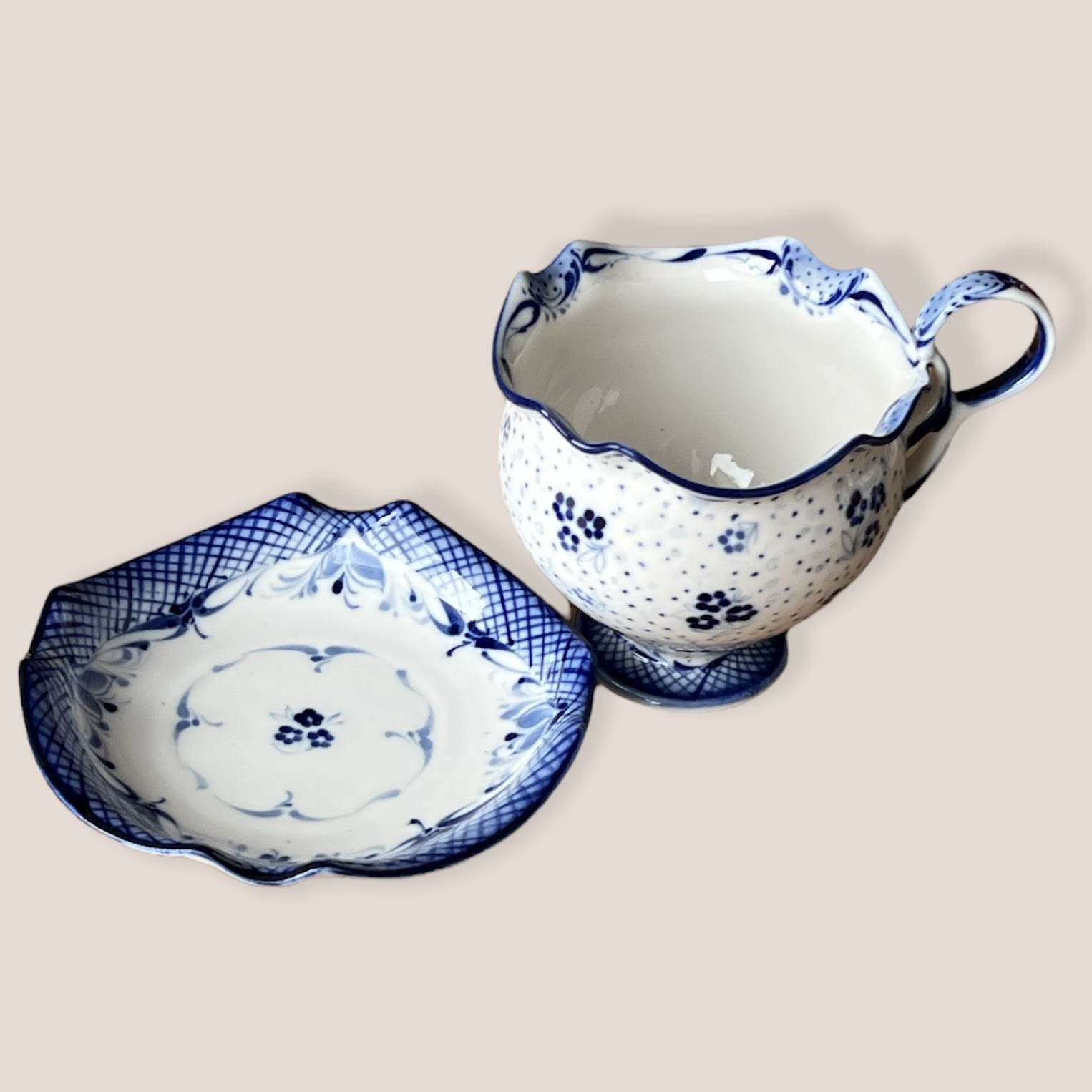 Чайная пара гжель "Прованс" 250мл фарфор 12см х 9.5см х 10см ручная работа