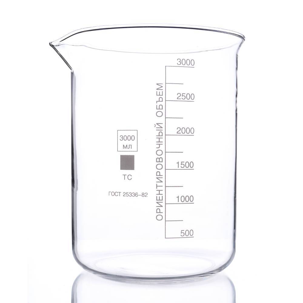 Стакан лабораторный 3000 мл (мерный, тип Н - низкий с делениями и носиком, термостойкий) ТС Н-1-3000