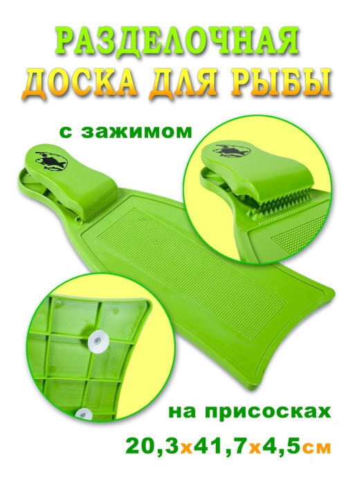 Разделочная доска для рыбы с зажимом на присосках, 20.3х41.7 см
