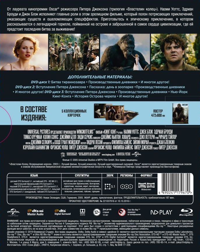 Кинг Конг (2005). Специальное издание (Blu-ray + 3 DVD + 5 карточек, плакат)