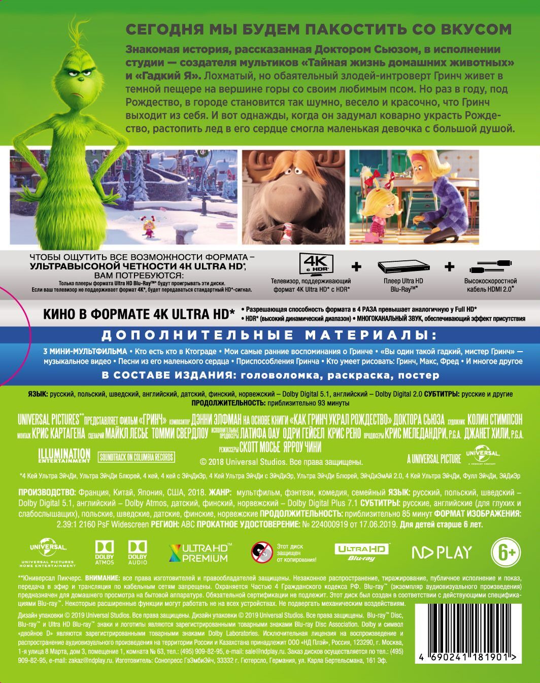 Гринч (м/ф) (4K UHD Blu-ray) + постер