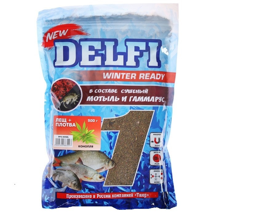 Прикормка зимняя увлажненная Delfi ICE READY (лещ+плотва, конопля), 500 гр.