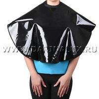 Пеньюар парикмахера TNL Professional короткий лакированный - черный (2) (PDS-21)