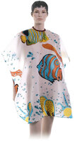 Пеньюар для стрижки DEWAL"Рыбки", детский, полиэстер,белый 95х120см, на крючках