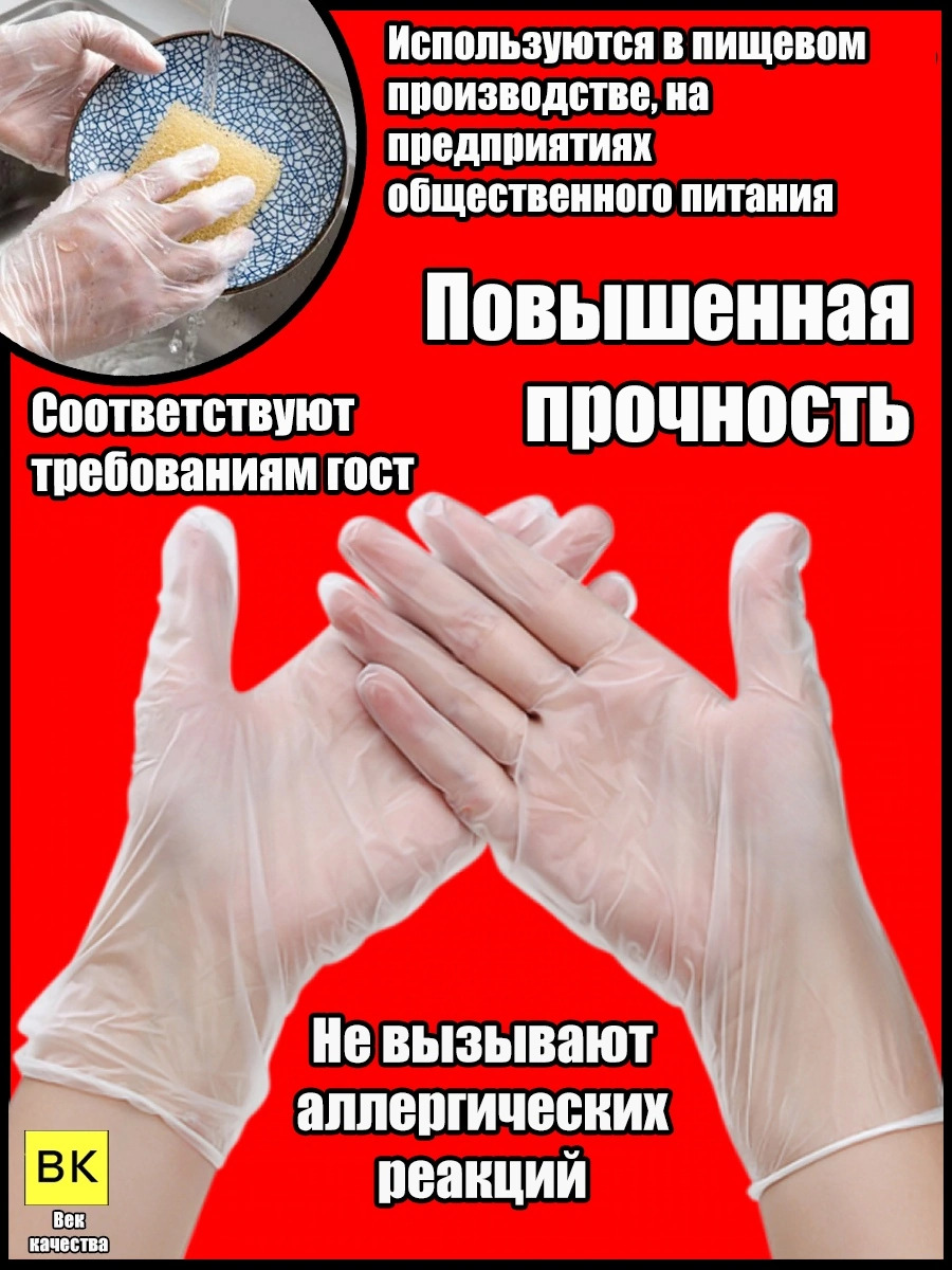 Перчатки Виниловые размер (XL) Медицинские Неопудренные Одноразовые 100 штук (50 пар)