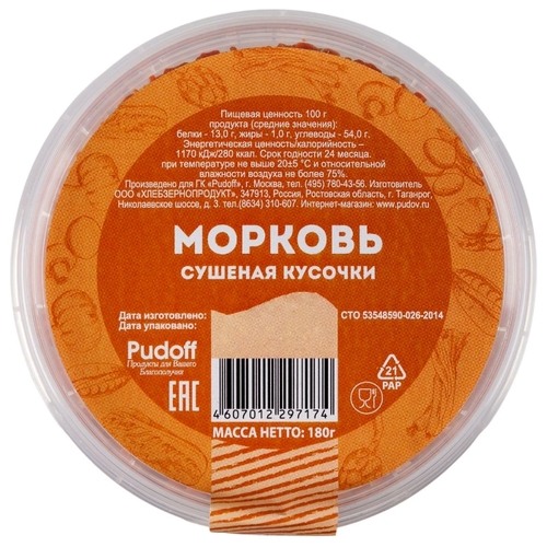 С.Пудовъ Пряность Морковь сушеная, 180 г