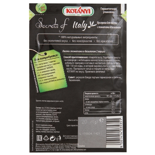Kotanyi Приправа Для пасты с томатами и базиликом, 20 г