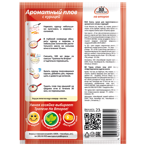 Трапеза Смесь для приготовления блюд Ароматный плов с курицей, 23 г