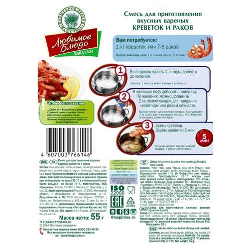 Волшебное дерево Смесь для приготовления Любимое блюдо Вкусные вареные креветки и раки, 55 г
