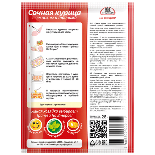 Трапеза Смесь для приготовления Сочная курица с чесноком и травами, 28 г