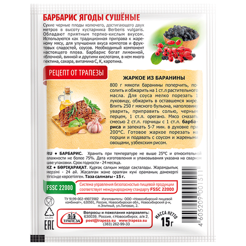 Трапеза Пряность Барбарис, 15 г