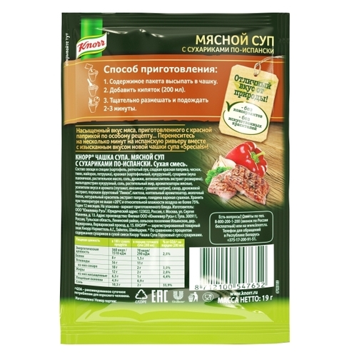 Knorr Чашка супа Мясной суп по-испански 19 г