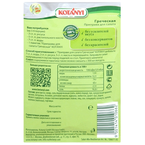 Kotanyi Приправа Для салата Греческая, 13 г