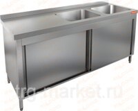 Стол нержавеющий закрытый купе с моечными ваннами;1800*600*850