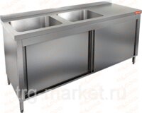 НСЗ2М-18/7БЛ стол нержавеющий с распашными дверцами и моечными ваннами;1800*700*8505