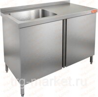 НСЗ1М-16/6БЛ стол нержавеющий с распашной дверцей и моечной ванной;1600*600*850
