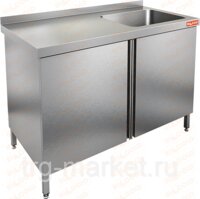 НСЗ1М-15/6БП стол нержавеющий с распашной дверцей и моечной ванной;1500*600*850